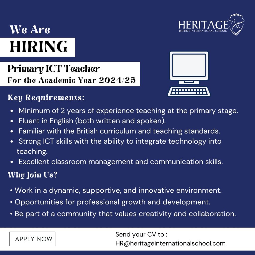 We are always on the lookout for passionate educators and staff who are committed to providing an exceptional learning experience for our students. Explore the current job openings below and take the next step in your career with Heritage British International School: